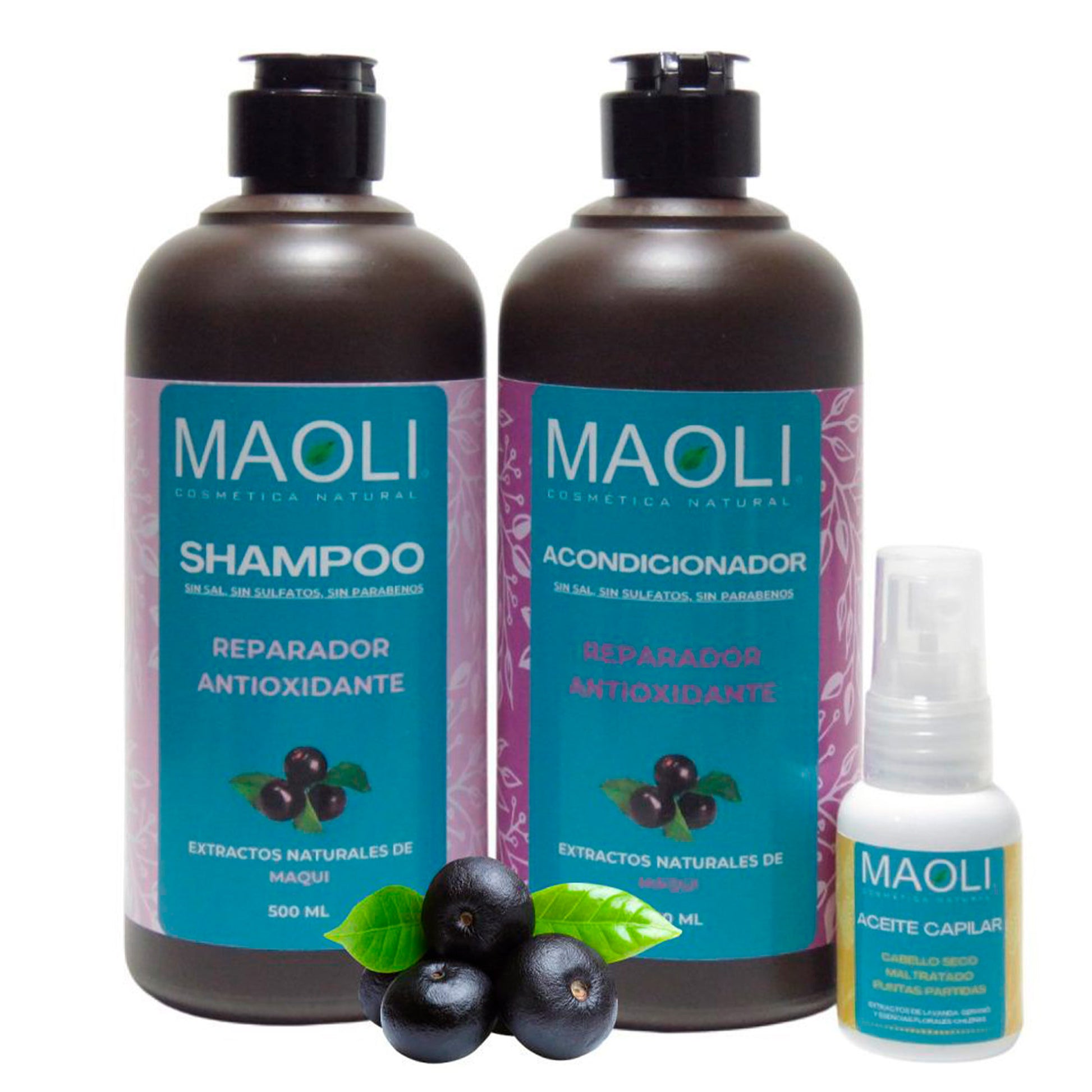Descubre el Pack Antioxidante Humectación de Maoli, una solución integral para el cuidado de tu cabello seco. Este conjunto incluye un shampoo, un acondicionador y un aceite capilar cabello seco que trabajan en sinergia para proporcionar una hidratación profunda y duradera, dejando tu cabello suave y manejable. La fórmula está diseñada para combatir los daños ambientales, gracias a sus propiedades antioxidantes que protegen y revitalizan cada hebra.