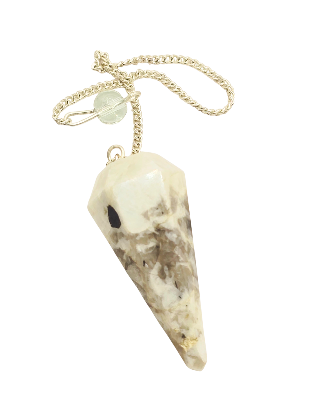 Un instrumento elegante y lleno de significado, tallado en piedra natural y diseñado para quienes buscan conexión, equilibrio y claridad. Cada péndulo es único gracias a sus vetas orgánicas en tonos crema, beige y marrón que reflejan la belleza auténtica de la naturaleza.